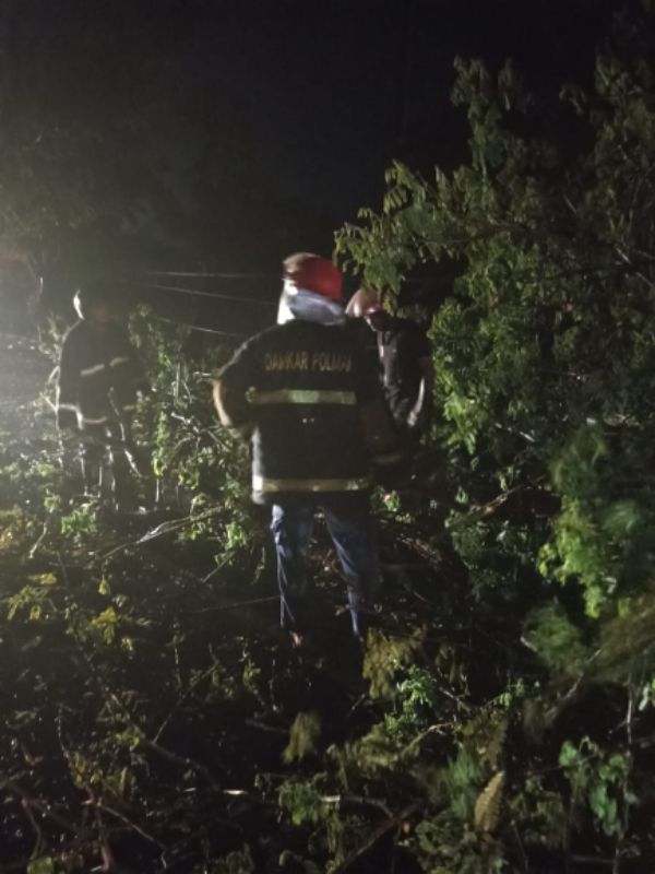 Dengan peralatan rescue tools dan koordinasi lapangan, batang pohon berhasil dievakuasi, dan jalur kembali terbuka.