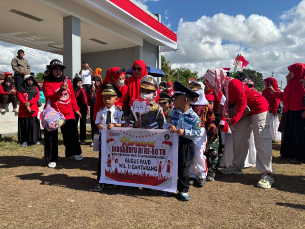 SimpulNusantara.com_BULUKUMBA, Suasana Kecamatan Gantarang pada Jumat (15/8/2025) dipenuhi keceriaan dan tawa riang. Ratusan anak dari 50 TK dan PAUD se-Kecamatan Gantarang dengan penuh semangat mengikuti lomba karnaval dalam rangka memperingati HUT ke-80 Kemerdekaan Republik Indonesia.