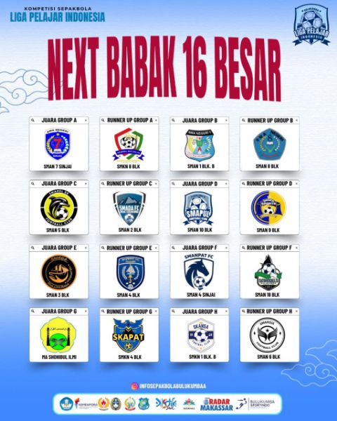 Melalui Press Release Minggu (14/09/2025) Ketua Steering Commite LPI dan CEO Bulukumba Sportindo Manajemen selaku Operator Kompetisi LPI Saiful Alief Subarkah ( SAS ) menyampaikan, bahwa Nantinya sebanyak 16 tim tersebut akan melakoni pertandingan babak knock out /sistem gugur untuk menentukan tim melaju ke babak 8 besar LPI. Untuk babak 16 besar Liga Pelajar Indonesia 2025 akan berlangsung, pada Senin 15 September 2025,’’ ungkapnya.