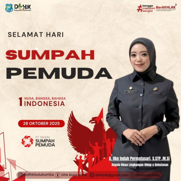 SimpulNusantara.com_Bulukumba, Dalam momentum peringatan Hari Sumpah Pemuda tahun 2025, Kepala Dinas Lingkungan Hidup dan Kehutanan (DLHK) Kabupaten Bulukumba, Andi Uke Indah Permatasari, S.STP, mengajak seluruh generasi muda untuk menyalurkan semangat perjuangan para pemuda dengan menjaga kebersihan dan kelestarian lingkungan.