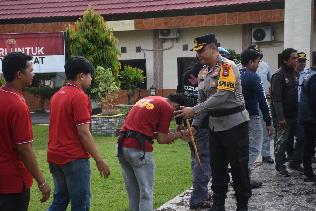 Dalam kegiatan tersebut, Kapolres Bulukumba secara simbolis menyematkan Pin Polantas Mappattabe kepada lima perwakilan ojol/kurir, sekaligus melakukan pemasangan helm standar sebagai bentuk kepedulian terhadap keselamatan berlalu lintas.