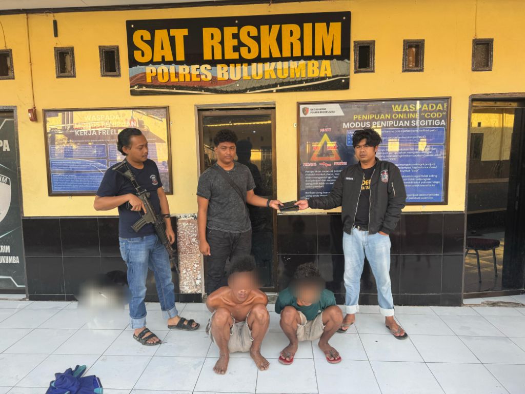 Dalam penangkapan tersebut Tim Resmob Polres Bulukumba dibackup oleh Resmob Sat Reskrim Polres Jeneponto sehingga berhasil menangkap kedua terduga pelaku yang merupakan pria berinisial ER alias EW (21) dan MS (15).