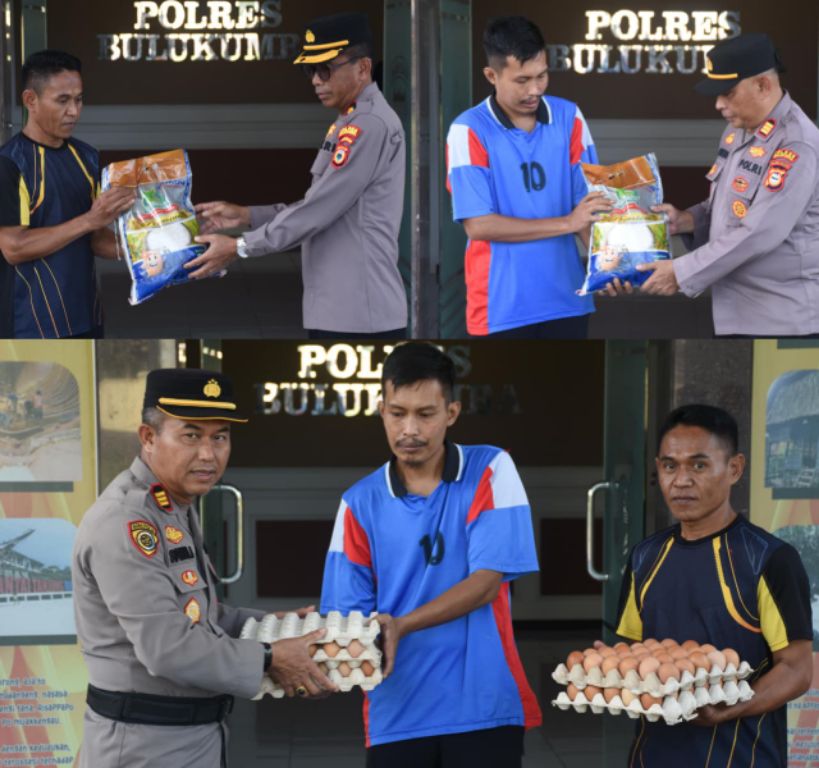 Wakapolres bersama Kabag SDM dan Kasat Binmas Polres Bulukumba menyerahkan langsung paket sembako berupa beras 5 Kg dan telur 2 Rak kepada kedua Cleaning service yang bekerja dikantor Polres Bulukumba.Penyaluran bantuan ini diharapkan dapat meringankan kebutuhan mereka, khususnya menjelang Hari Raya Idul Fitri.