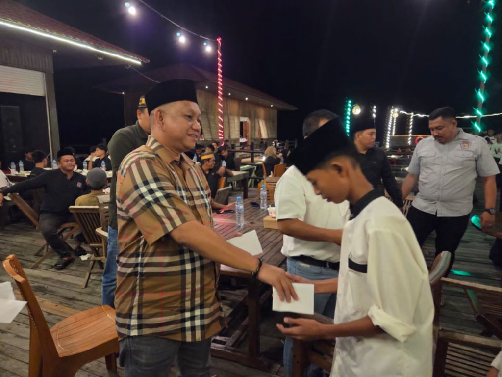 Selain itu, juga tampak hadir Owner Rumah Pinisi Garden Haji Ariawan. Buka puasa dirangkai dengan pemberian santunan dari Om King untuk seratus santri Pondok Tahfizh Al-Mutahabbun.
