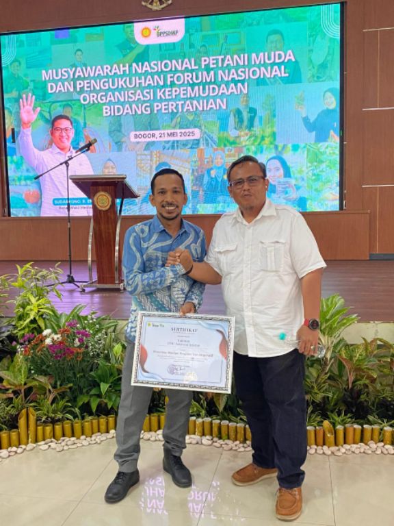Penghargaan sebagai petani muda inspiratif di berikan langsung oleh wakil Menteri bpak Sudaryono, B, ENG, M. M. MBA.