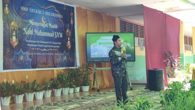 SimpulNusantara.com_BULUKUMBA, UPT SMPN 5 Bulukumba menyelenggarakan peringatan Maulid Nabi Muhammad SAW di pelataran sekolah dengan…